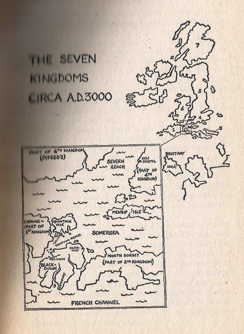 But it wasn't just the scientists. The idea of global warming had penetrated popular culture to the extent that at least three British science fiction writers tackled it. Bob Shaw in Medusa's Children (1977); Christopher Priest (rather peripherally) in A Dream of Wessex (1977); and Richard Cowper in The Road to Corlay (1978). The latter has a map on the inside cover. As you can see, Cowper's prediction of sea level rise was fairly drastic, but - given that it must have taken a few centuries - not unreasonable. Note that, finally, London no longer holds sway over England, as the Smoke has gone the way of Atlantis.